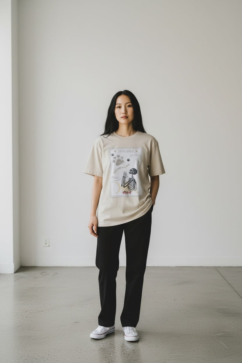 Dog person Tarrot card T shirts (beige)