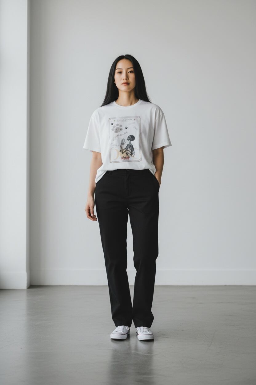 犬好きな方にはたまらない、遊び心あふれるアートがプリントされており、日常のコーディネートに個性をプラスします。